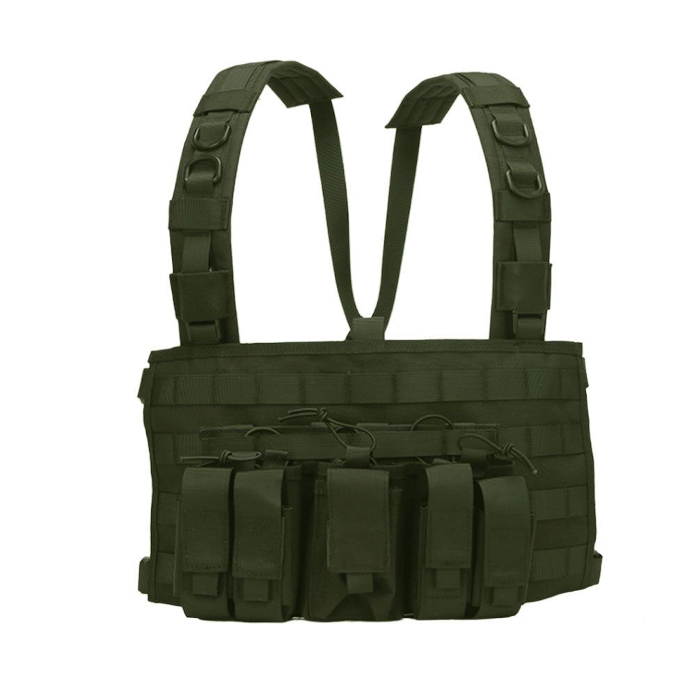 The "Recon" Chest Rig, with padded carrying straps, serves its purpose of storing enough magazines for long missions.