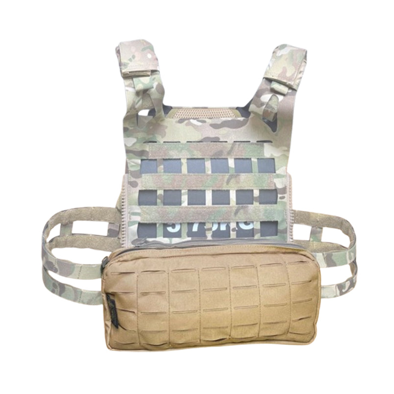 A laser-cut MOLLE panel on the front ensures maximum modularity. The back is equipped with four MOLLE loops with snap fasteners – compatible with plate carriers, battle belts, backpacks, or vehicle modules.