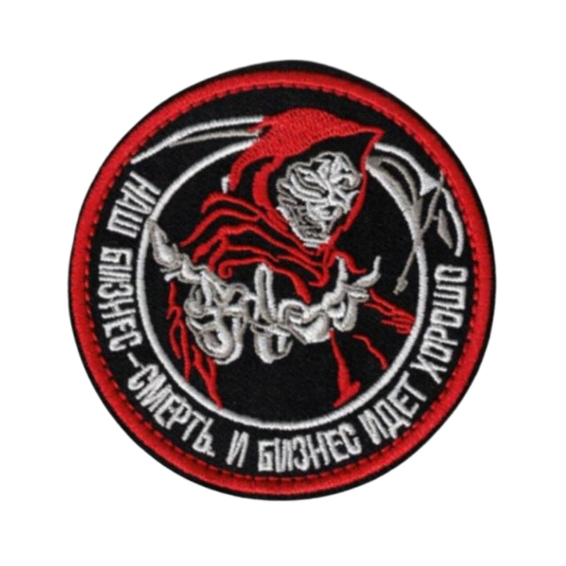 Wagner PMC Group Grim Reaper Velcro Patch Our Business Is Death Fabric Patch