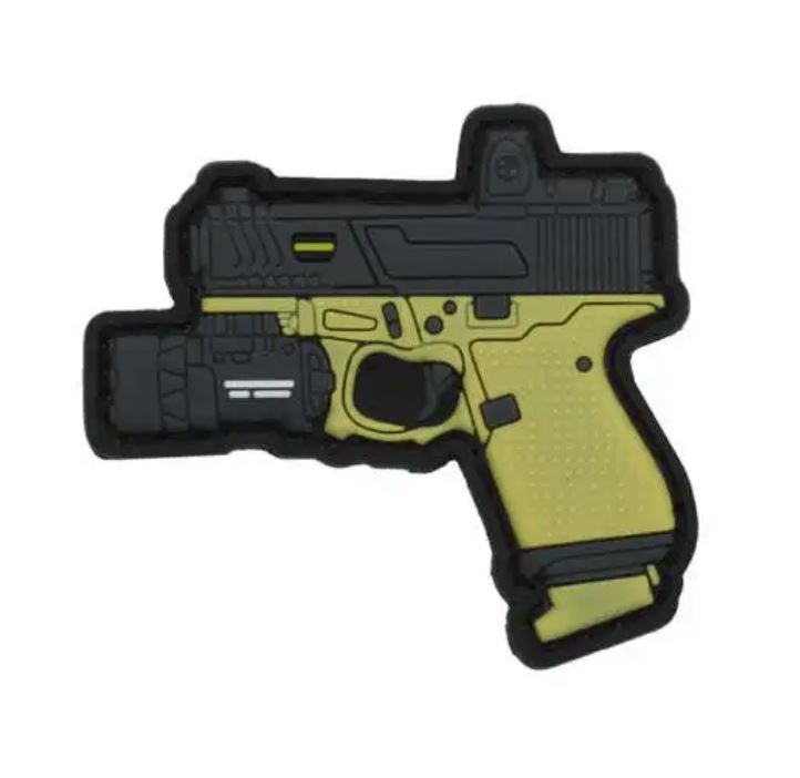 Hochwertiger Glock Miniaturwaffe Klettaufnäher aus PVC mit Klettfläche auf der Rückseite, ideal zum Anbringen auf der Schutzweste, Rucksack oder Pouches.