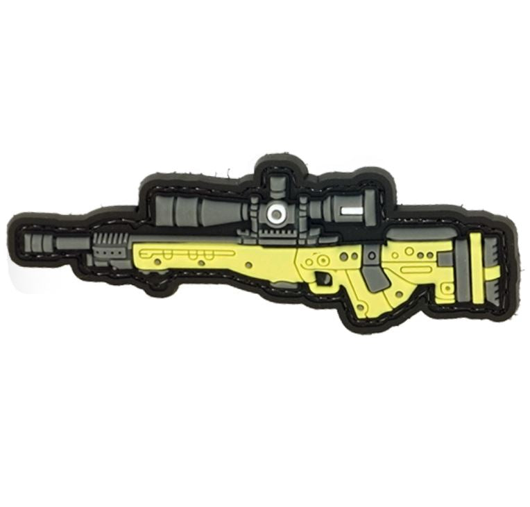 Hochwertiger AWP Sniper Miniaturwaffe Klettaufnäher aus PVC mit Klettfläche auf der Rückseite, ideal zum Anbringen auf der Schutzweste, Rucksack oder Pouches.